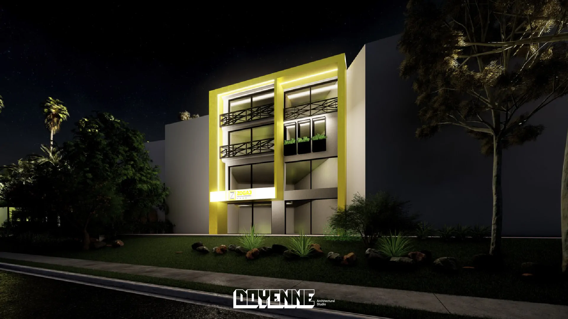 What stands out the most? Using Zogaj Home’s signature yellow in a smart way so that the building stands out on the main road. This bright splash of colour: